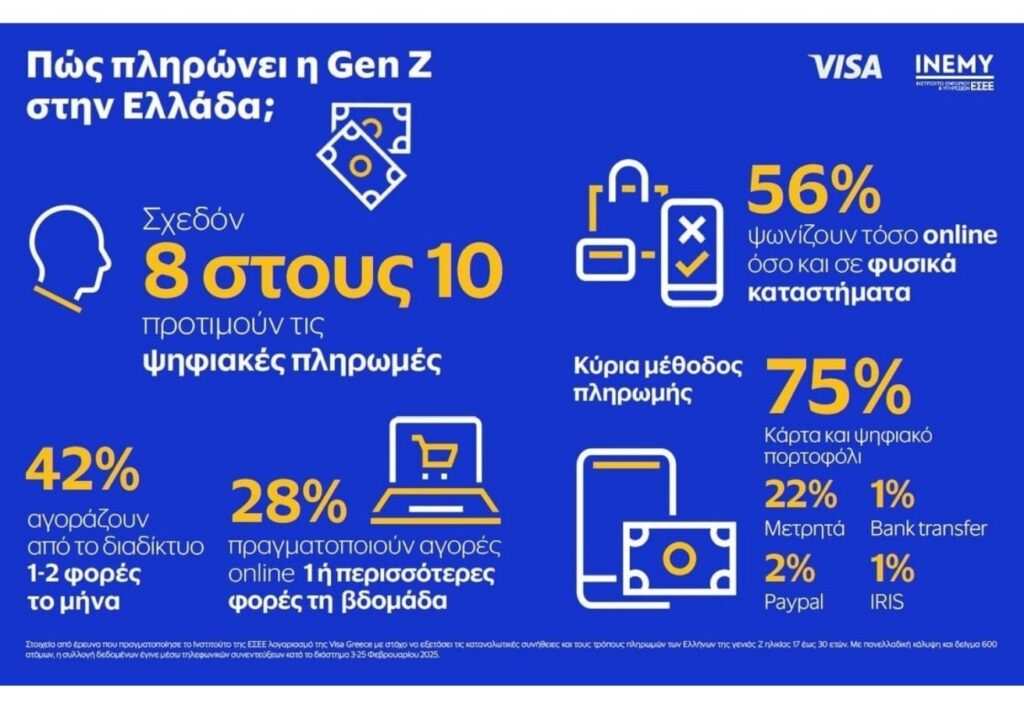 Αθήνα, 20 Μαρτίου 2025 – Η Visa και το Ινστιτούτο της ΕΣΕΕ ανακοίνωσαν σήμερα τα αποτελέσματα πανελλαδικής έρευνας που ανέδειξε την καταναλωτική συμπεριφορά και τις προτιμήσεις πληρωμών της Gen Z στην Ελλάδα.