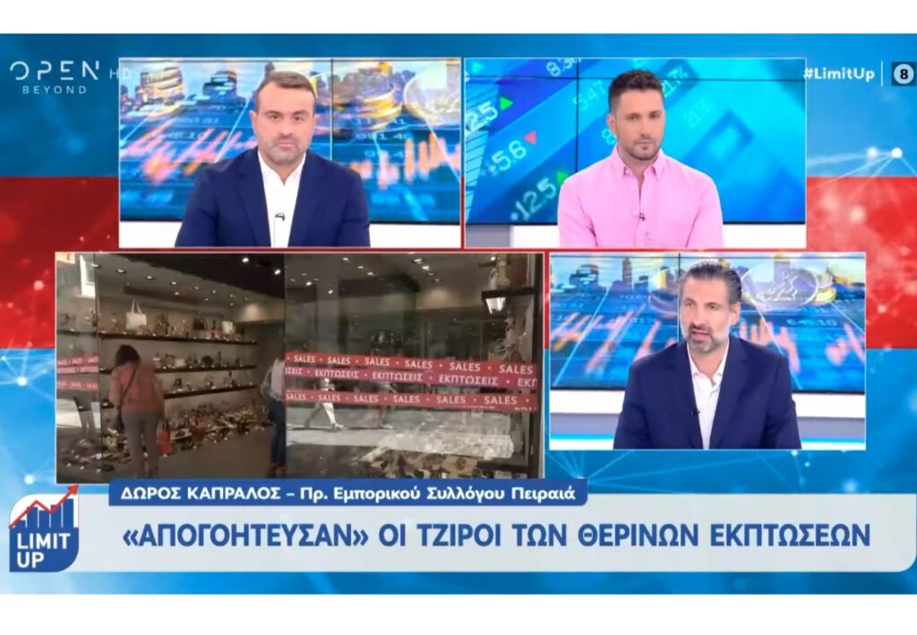 Μια συνολική αποτίμηση της αρνητικής για το λιανικό εμπόριο εικόνας των θερινών εκπτώσεων σε όλη τη χώρα έκανε ο Γεν. Γραμματέας της ΕΣΕΕ κ. Δώρος Καπράλος στη εκπομπή Limit Up του Open TV. Εξήγησε ότι λόγω της μείωσης του διαθέσιμου εισοδήματος οι καταναλωτές αποφεύγουν πλέον τις παρορμητικές αγορές, προσδοκώντας ενδεχομένως καλύτερες τιμές σε άλλες περιόδους προσφορών κατά τη διάρκεια της χρονιάς. Τόνισε την ανάγκη στήριξης της βιωσιμότητας των μικρομεσαίων εμπορικών επιχειρήσεων με στοχευμένα μέτρα από την Πολιτεία.